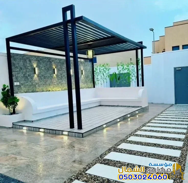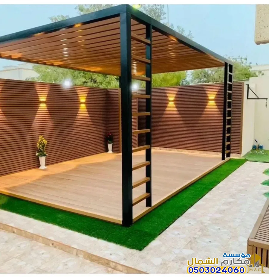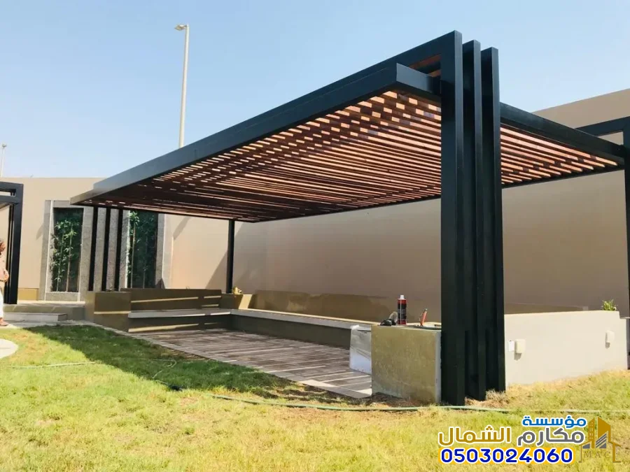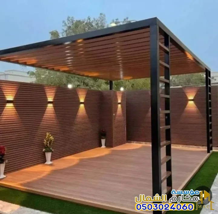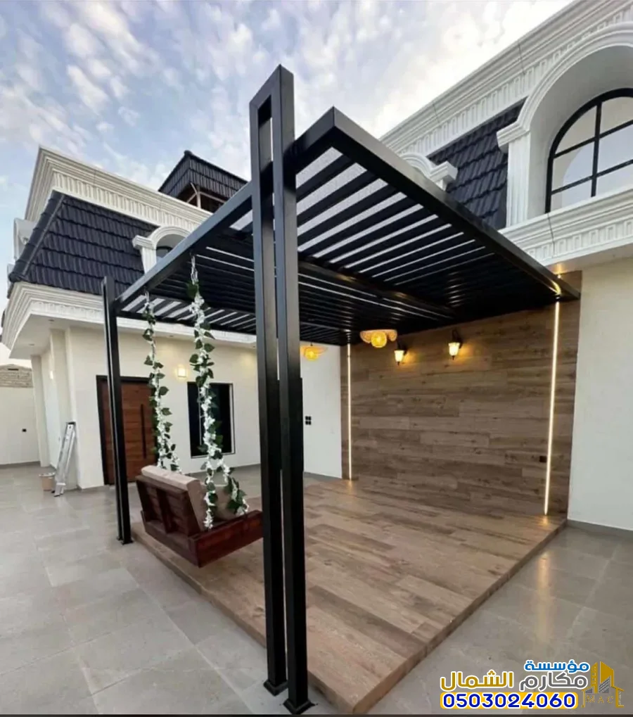 الإضاءة المدمجة: إضافة وحدات إضاءة (LED) أو سبوتات داخل هيكل البرجولة تزيد التكلفة.