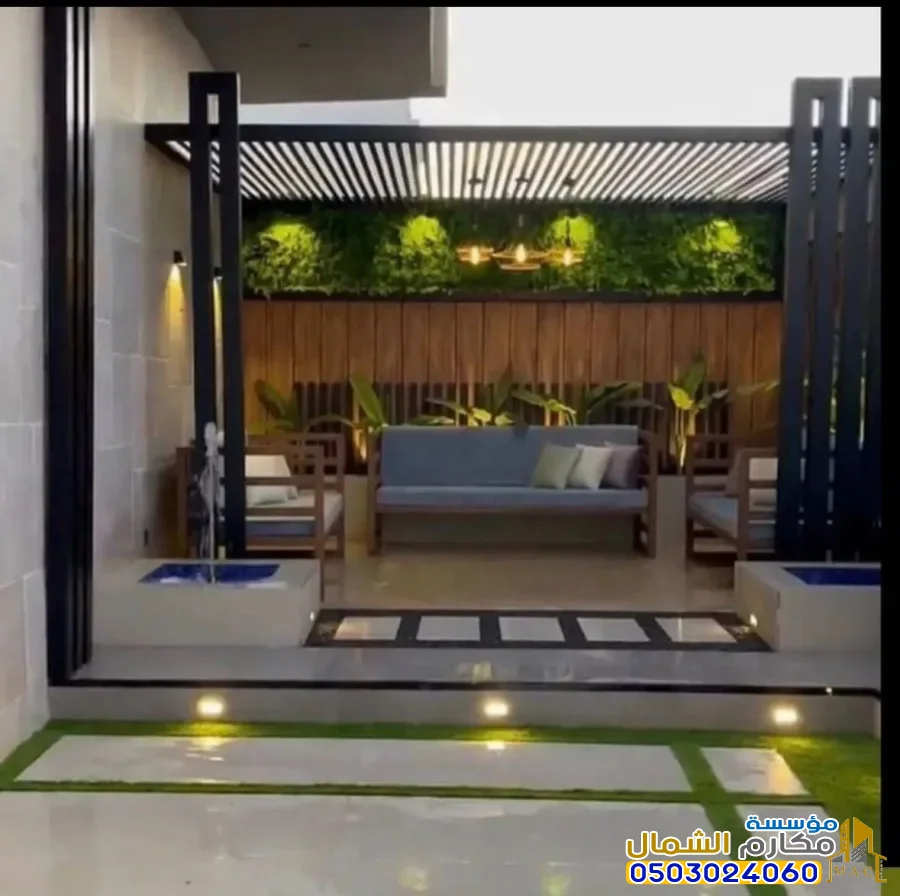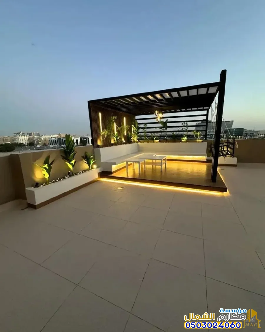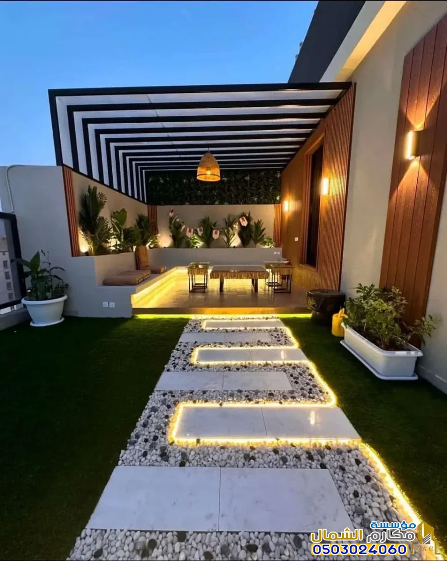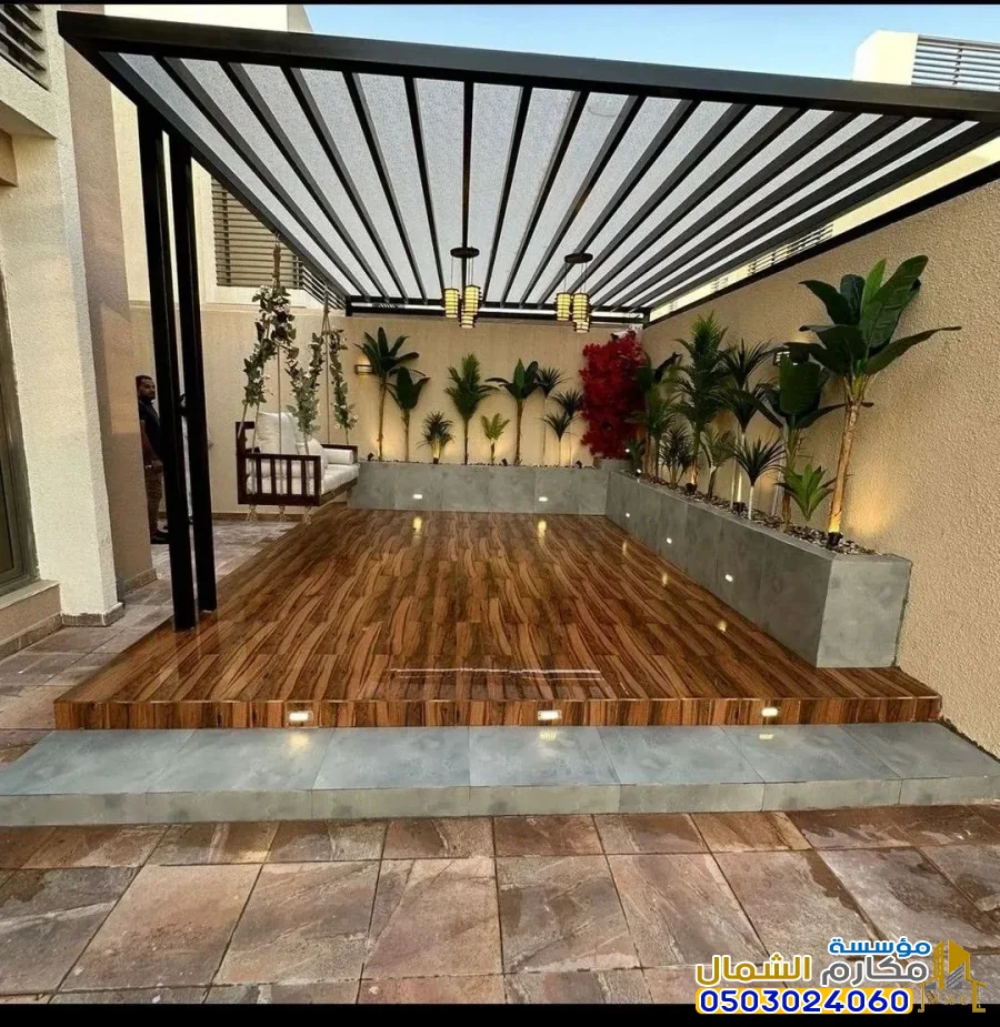 الإضاءة المدمجة: إضافة وحدات إضاءة (LED) أو سبوتات داخل هيكل البرجولة تزيد التكلفة.
