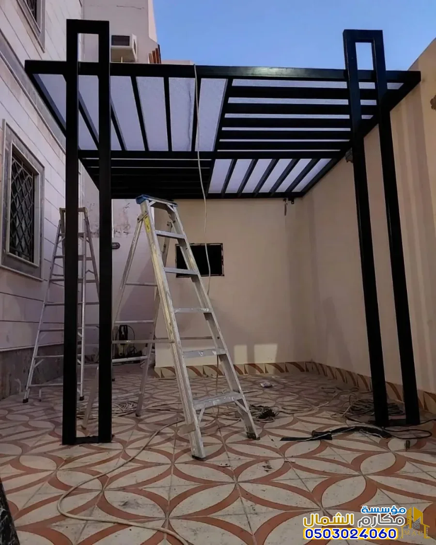 تغطية اللكسان (البولي كربونات): مادة شفافة أو شبه شفافة توفر حماية ممتازة من المطر والأشعة فوق البنفسجية. يرفع هذا الخيار سعر المتر المربع وقد يضيف ما يقارب 50 - 100 ريال على سعر المتر المربع للبرجولة الحديدية.