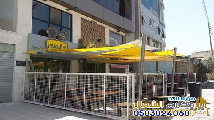 - المطاعم والمقاهي: يمكن إنشاء مناطق جلوس خارجية مغطاة بمظلات الشد الإنشائي.