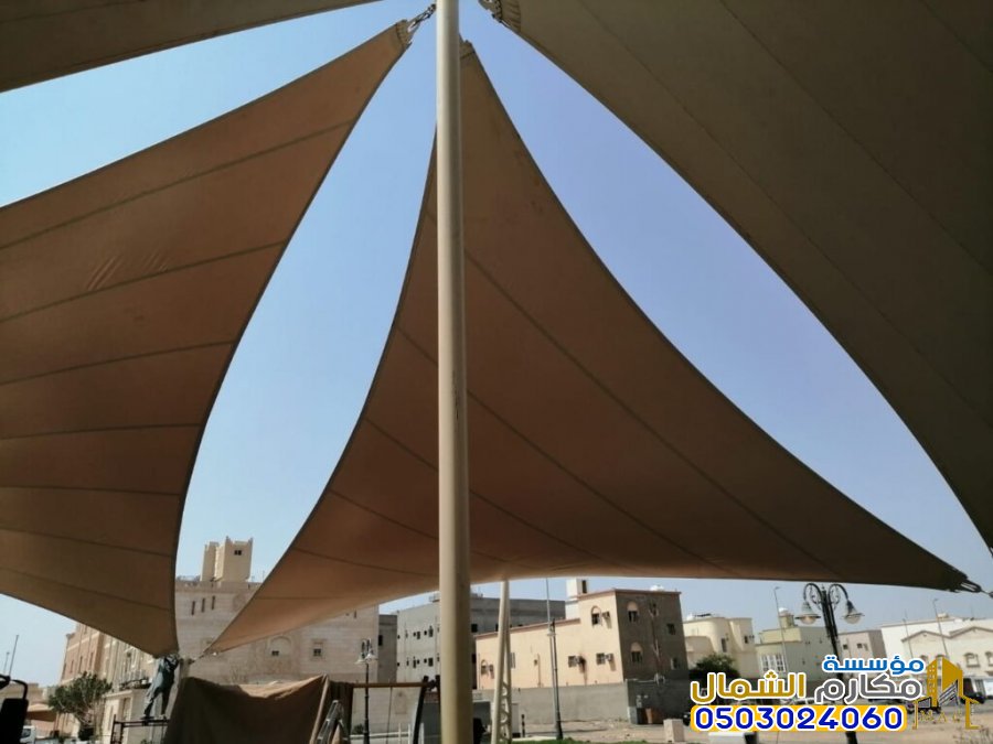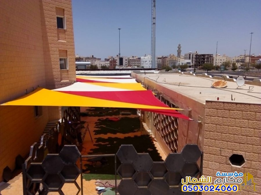 - التنوع الجمالي: توفرمؤسسه مكارم الشمال مظلات الشد الإنشائي بأشكال وألوان متنوعة، مما يضيف لمسة جمالية فريدة إلى الحي.