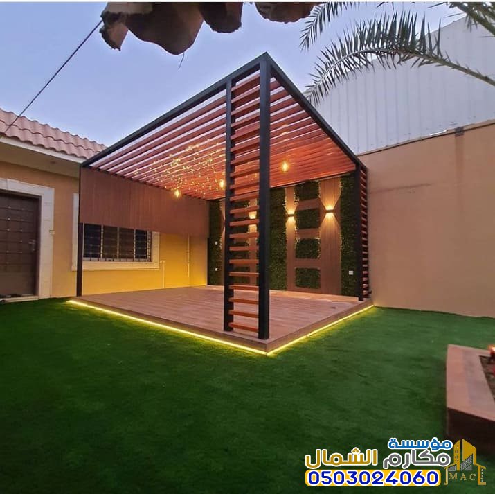 - تضمين معلومات عن مؤسسه مكارم الشمال المتخصصة في تركيب البرجولات في الرياض.