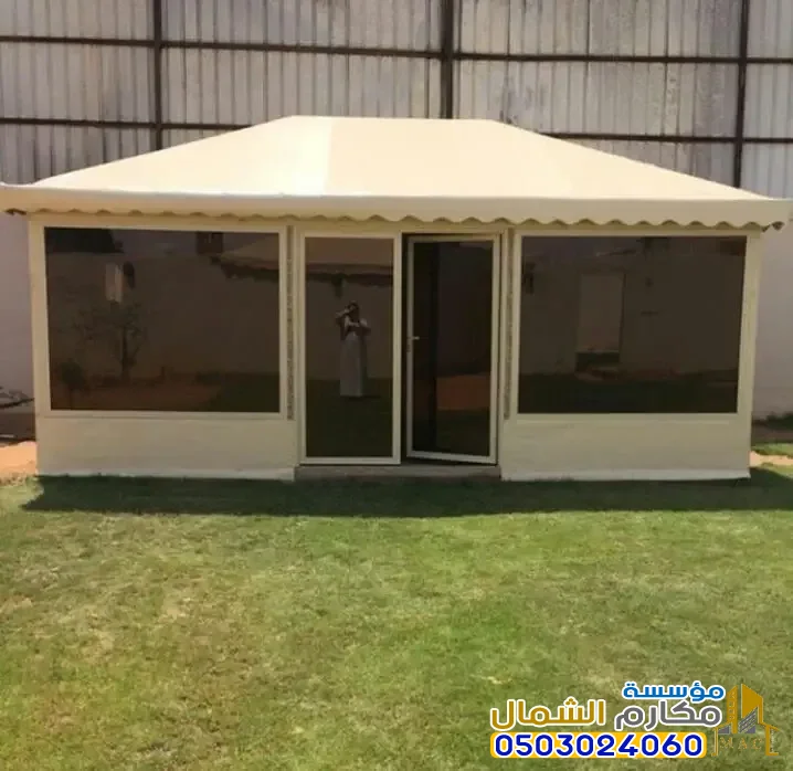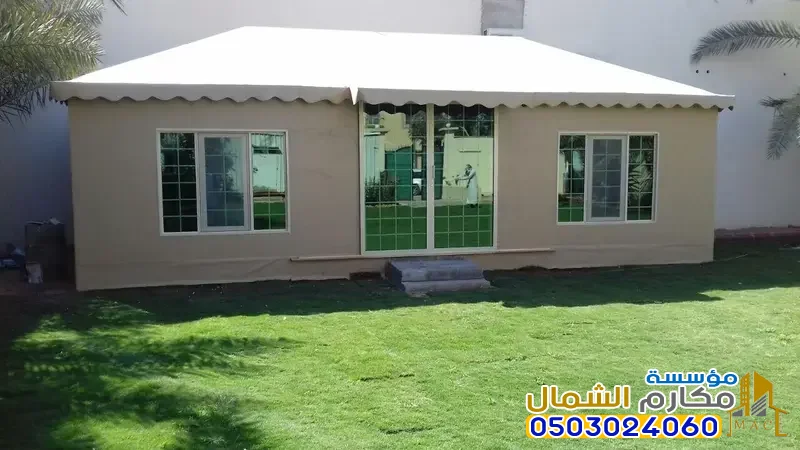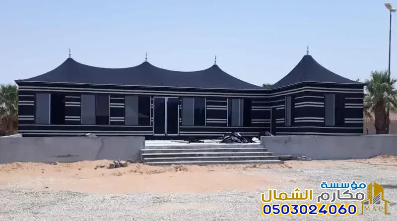 هياكل معدنية قوية قابلة للفك السريع، وتجهيزات داخلية فاخرة. أصبح التركيز على دمج التقنيات الذكية (كالإضاءة والتكييف)، وتركيب نوافذ زجاجية معزولة، والبطانة الداخلية المترفة بأقمشة السدو والألوان الملكية. إنها مساحات متعددة الاستخدامات، تجمع بين كرم الضيافة العربية ومتطلبات الحياة العصرية الفخمة.